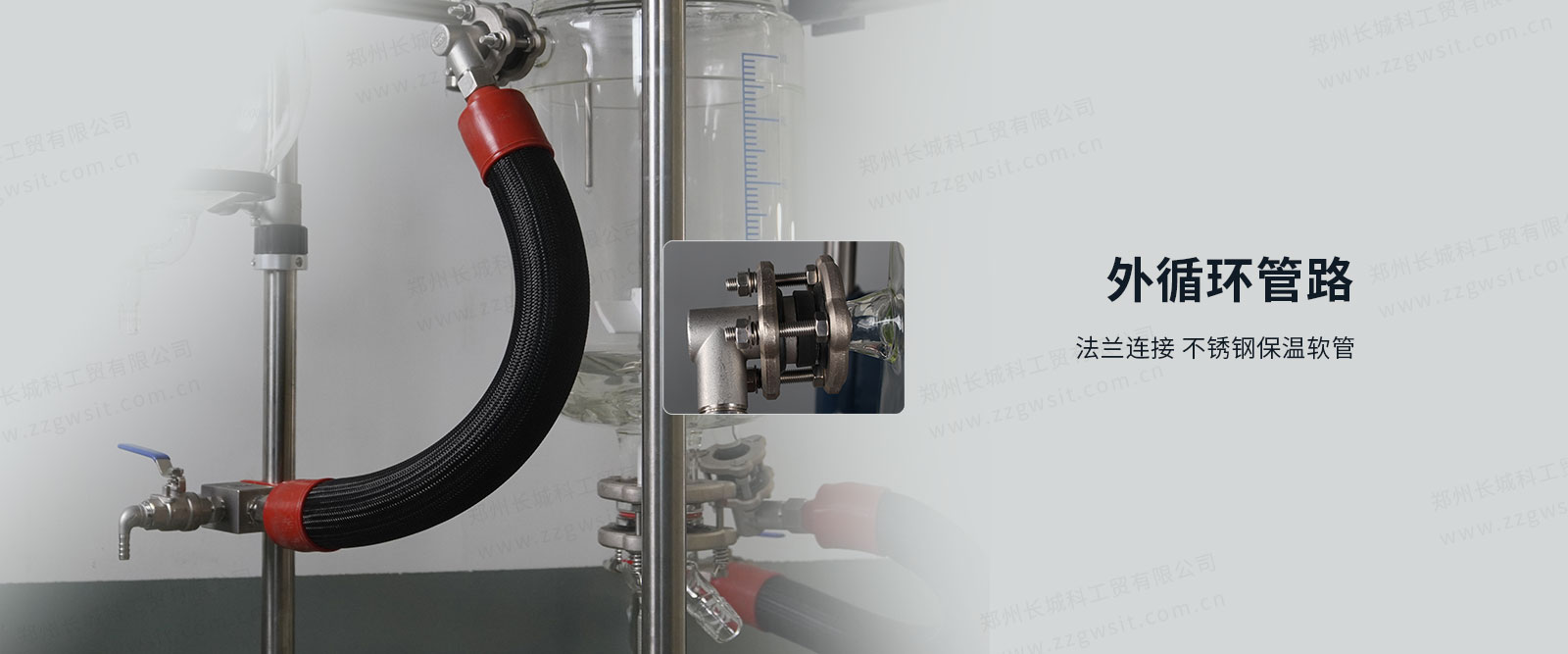 ● 夾套進、出液口連接不銹鋼保溫軟管,減少進出液口應力。